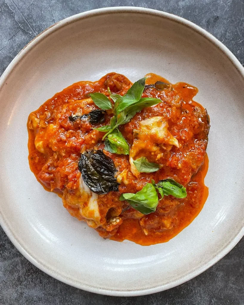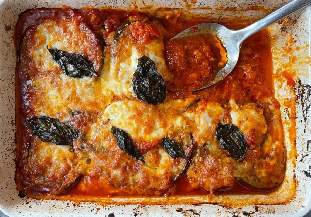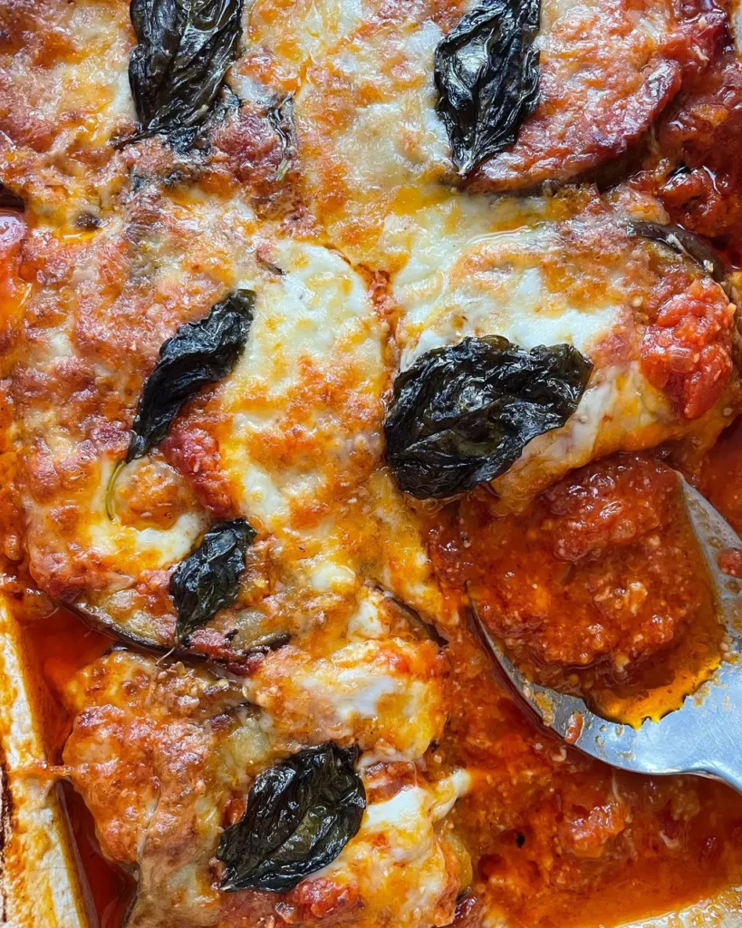 The charred eggplant adds smokiness, the slow-simmered tomato sauce brings depth, and the gooey layers of cheese create that irresistible pull with every bite.
