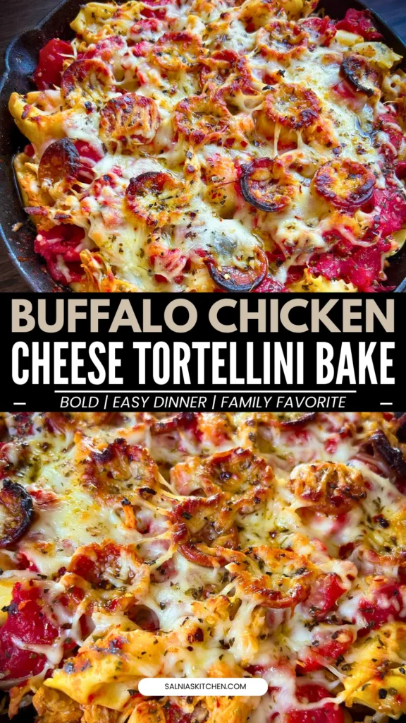 Home » Dinner » Cheesy Buffalo Chicken Tortellini Bake with Pizza-Inspired Flavors