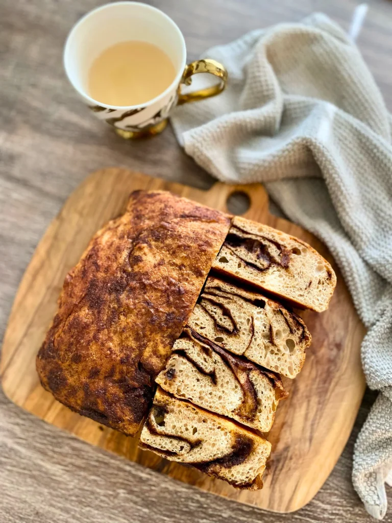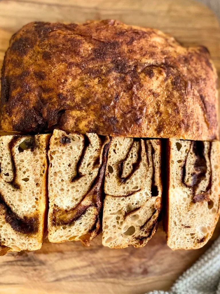 This bread is the kind of treat you bake once and instantly add to your repeat list. The dough itself is soft and slightly chewy thanks to the hydration from sourdough fermentation, but the cinnamon sugar filling makes it taste like a pastry. It’s not too sweet—just perfectly balanced so you can enjoy it in the morning with coffee or as a dessert with a drizzle of glaze.