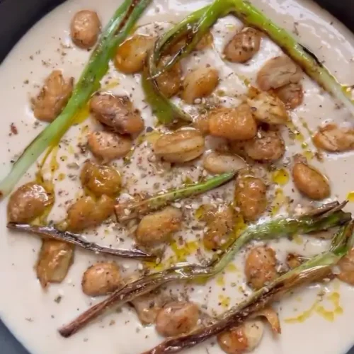 Butter beans are the quiet heroes of this dish. When blended with olive oil, lemon, and garlic, they turn incredibly smooth without needing dairy.