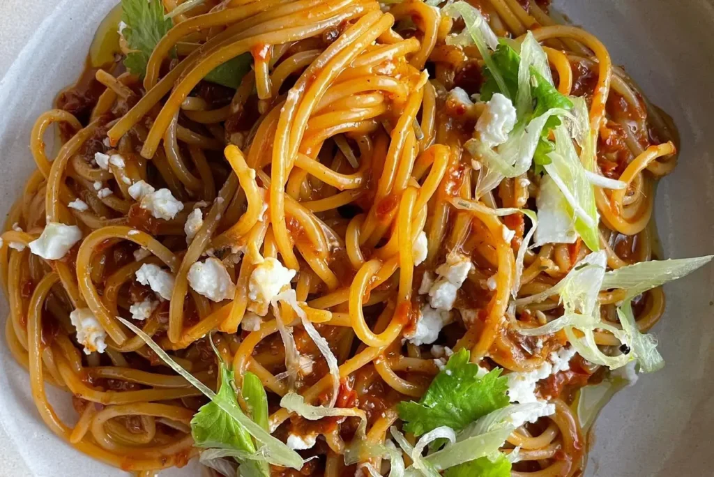 Many pasta recipes rely on the same old tomato or cream-based sauces. This creamy harissa spaghetti with feta and crispy spring onions is something different entirely. It’s bold, aromatic, and full of character.