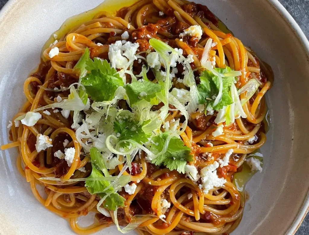 This creamy harissa spaghetti with feta and crispy spring onions proves that comfort food doesn’t need to be complicated. It’s quick enough for weeknights yet bold enough to impress at a dinner party.