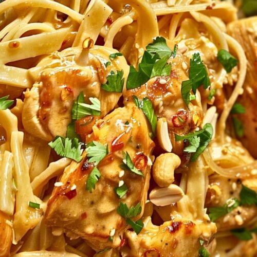 This creamy peanut lime chicken noodle dish hits all the right notes—savory, nutty, tangy, and just a little spicy. It’s one of those quick meals that feels more indulgent than it should for how little effort it takes. The sauce is rich and velvety thanks to peanut butter, with fresh lime juice and chili sauce cutting through to brighten everything up. Add juicy pieces of golden-seared chicken, fresh herbs, and crunchy peanuts, and you’ve got a noodle bowl worth repeating.