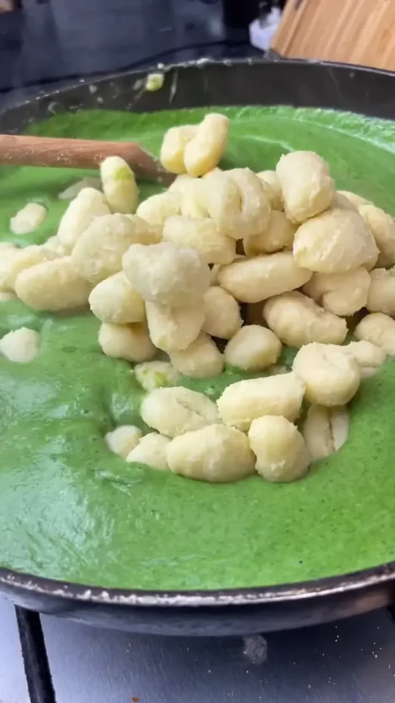 The color should be bright green and glossy. Blend until no spinach bits remain—you want a velvety texture that will coat every gnocchi piece.