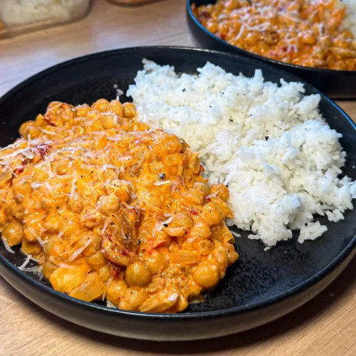 This recipe delivers everything you’d want in a comforting vegetarian meal: creamy texture, bold tomato flavor, and wholesome chickpeas that keep you full.