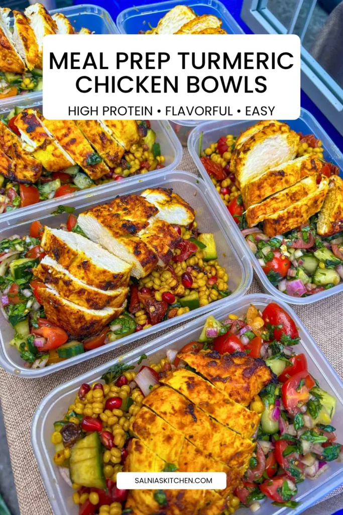 Many chicken meal prep recipes can feel repetitive or bland. This turmeric chicken with couscous salad is anything but.