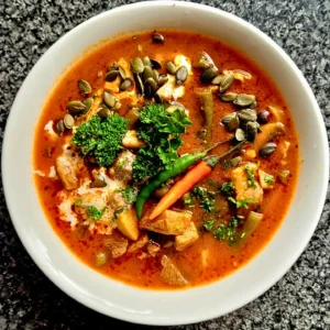- Serve hot, garnished with a swirl of cream, fresh parsley, and toasted pumpkin seeds if desired.