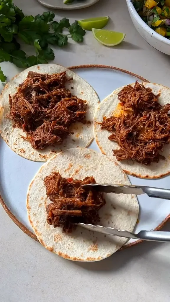 Start with a modest amount of pulled beef rather than overfilling. This allows room for toppings without overwhelming the tortilla.