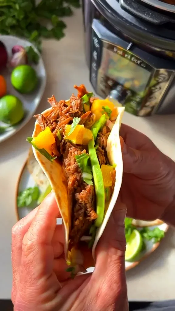 Instant Pot Pulled Beef Tacos with Citrus Salsa