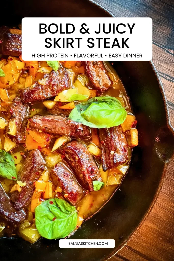 This marinated skirt steak with bell peppers is proof that bold flavors don’t need complicated steps. With a short marinade, quick broil, and just a handful of ingredients, it delivers a balanced dinner that’s easy enough for weeknights yet flavorful enough for entertaining.