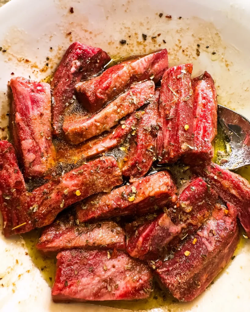 The marinade is the backbone of this recipe. Garlic-infused olive oil creates an aromatic base that clings to the beef, while balsamic vinegar balances richness with acidity.
