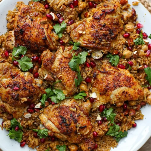 This Persian chicken with chickpeas, almonds, and pomegranate is the kind of dish that feels both comforting and celebratory. It turns a handful of simple ingredients into a layered, flavorful meal that’s guaranteed to impress.