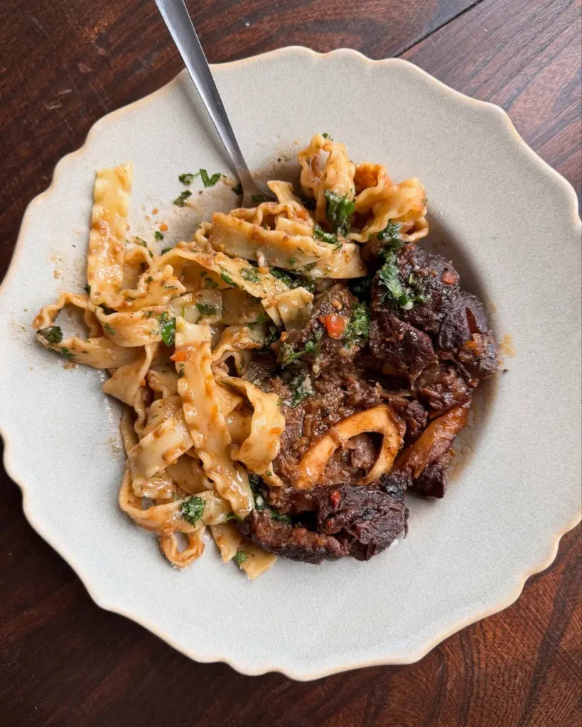 If you prefer a lighter plate, serve smaller shank portions over a bed of buttery polenta instead of pasta.