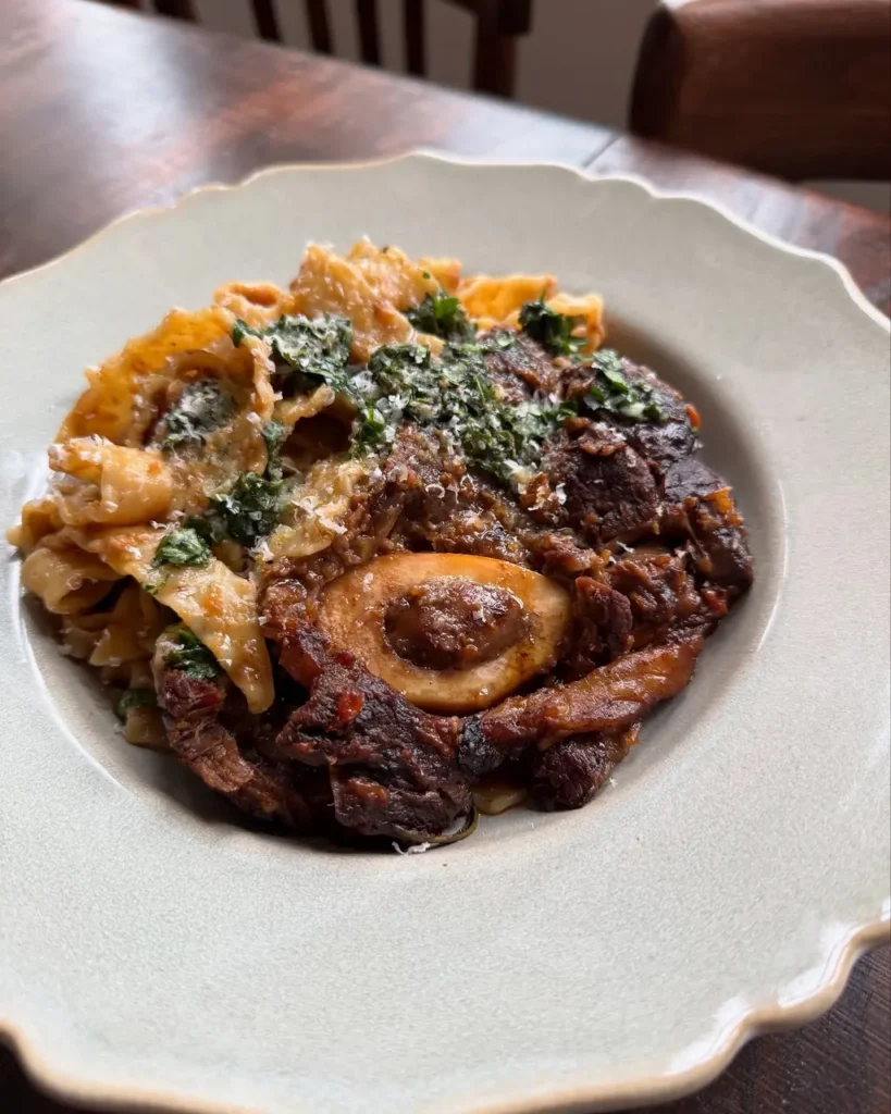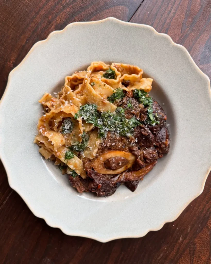 Slow-Braised Beef Osso Buco with Zesty Anchovy Gremolata & Rustic Pasta