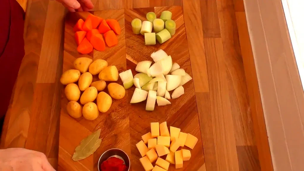 Leeks, onions, carrots, and swede create a classic aromatic base. Together, they provide sweetness, depth, and a subtle earthiness that balances the richness of the beef.