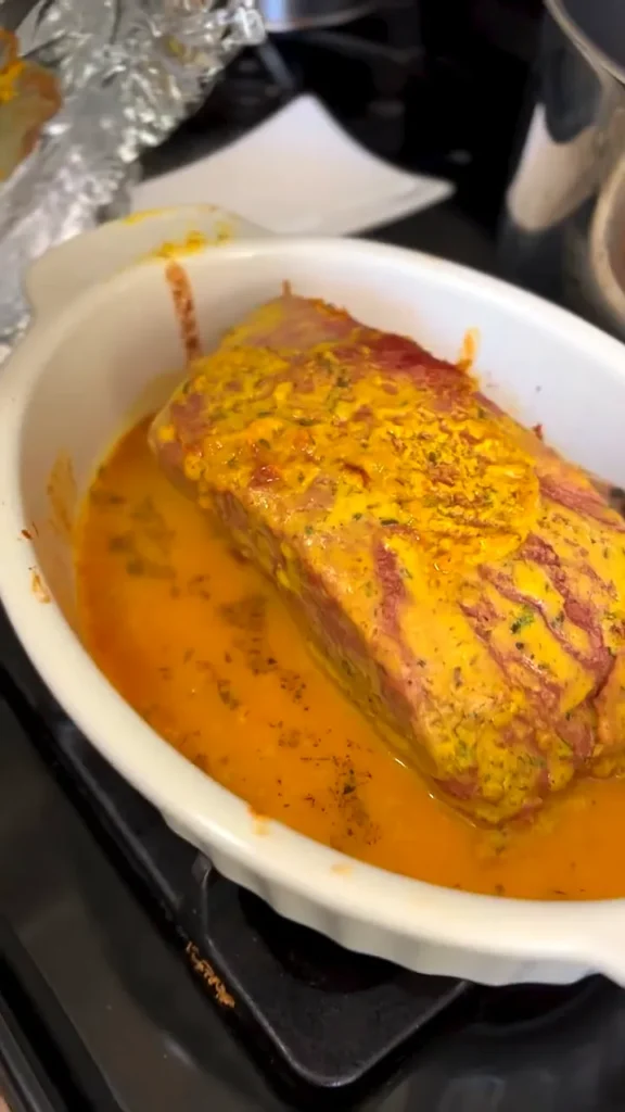 - Preheat the oven to 400°F (200°C). Remove the cooked corned beef from the slow cooker and place it in an oven-safe baking dish.