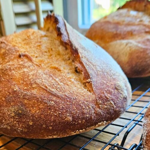 To freeze: wrap the cooled loaf tightly in foil, then place it in a zip-top bag. Defrost at room temperature or reheat in the oven to refresh the crust.